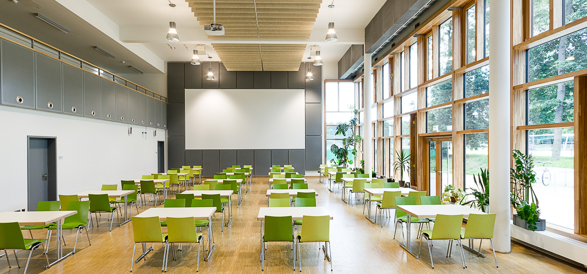 Das Gebäude erfüllt höchste Anforderungen hinsichtlich der Nachhaltigkeit in Bau und Betrieb. Es erzeugt mehr Primärenergie, als es verbraucht und ist damit CO2- neutral. Das 7.400 m² große Gebäude ist ein „Leuchtturmprojekt“ der Förderinitiative „Energieeffiziente Schulen“, die Bestandteil des Forschungsschwerpunktes „Energieoptimiertes Bauen“ (EnOB) des Bundesministeriums für Wirtschaft und Technologie ist. Das Gebäude ist mit dem Nachhaltigkeitsiegel in Gold des Bewertungssystems BNB ausgezeichnet.