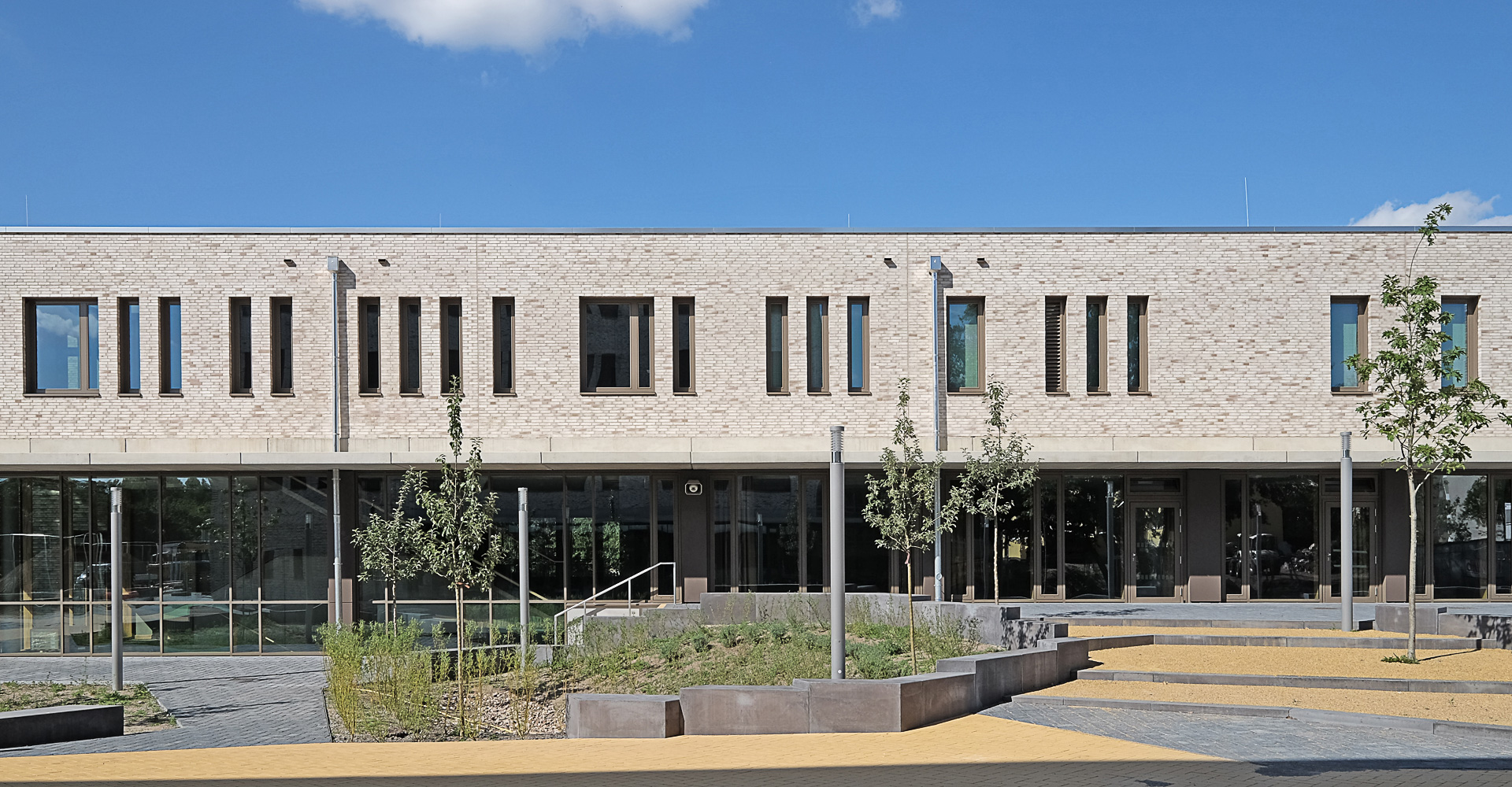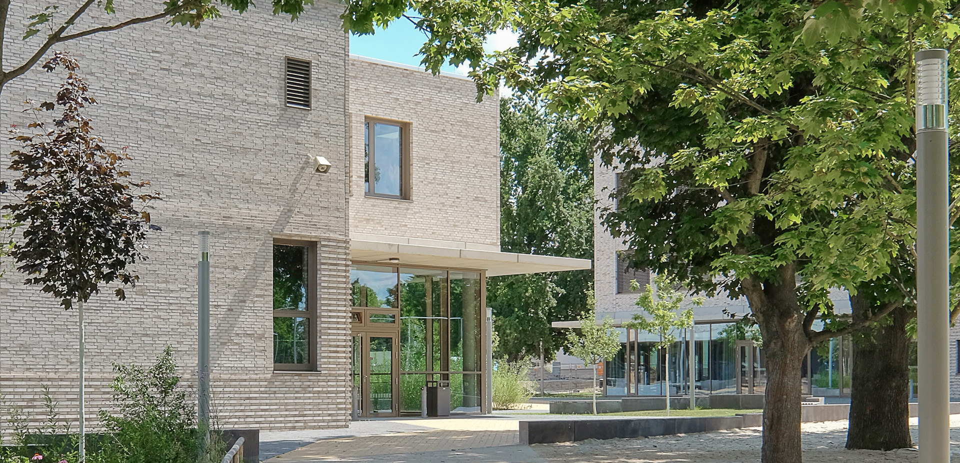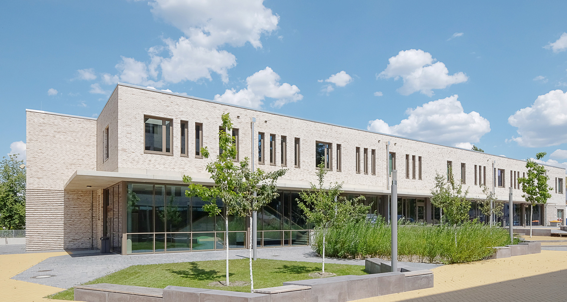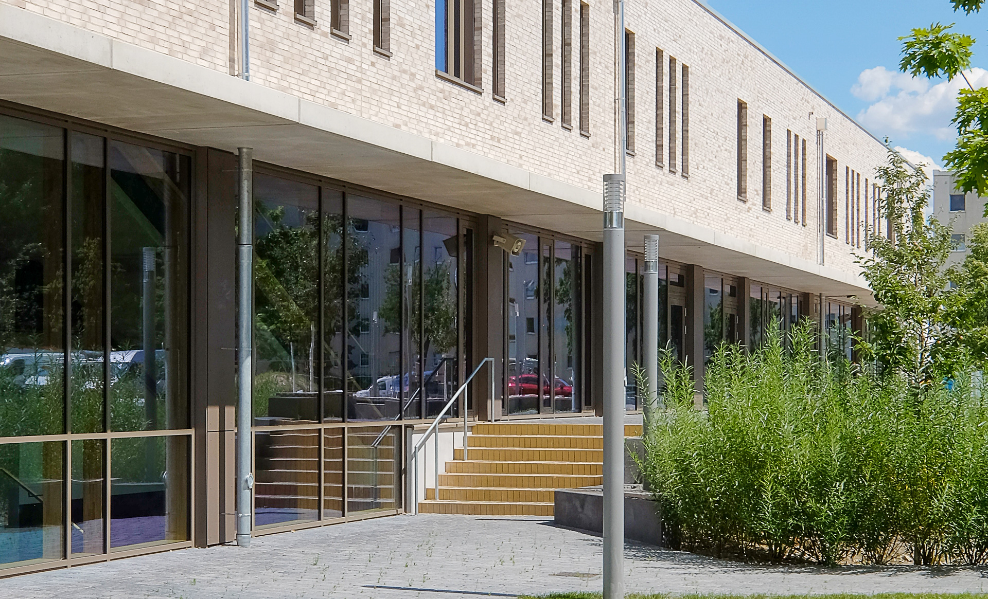 Die tragenden Wände und Stützen werden aus Stahlbeton in Sichtqualität hergestellt, Die Fassaden werden als Stahlbetonwände mit einer Klinker-Vorsatzschale hergestellt. Fenster und Pfosten-Riegel-Fassaden sind Holz-Aluminiumsysteme.
