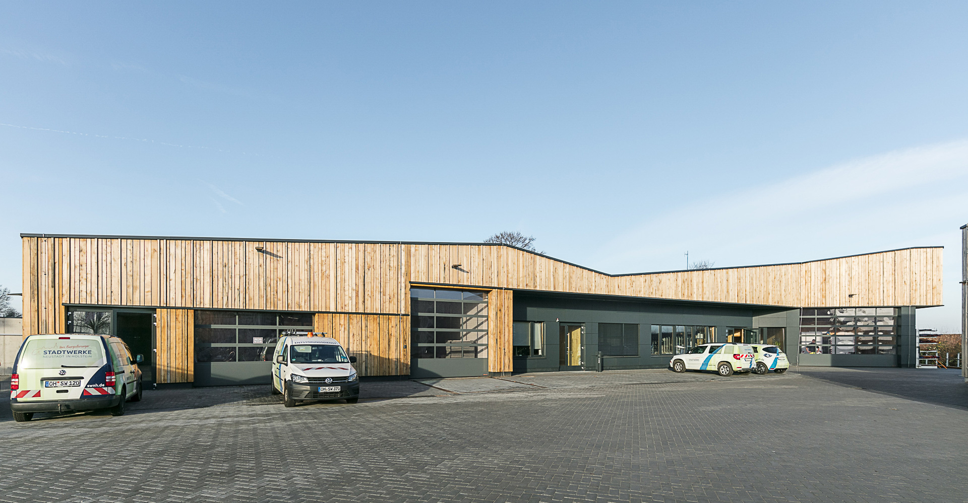 Das Bauvorhaben umfasst den Neubau des Verwaltungsgebäudes der Stadtwerke Neustadt in Holstein sowie ein Werkstatt -